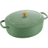 Garnek owalny ma szczególnie odporną na zarysowania powłokę emaliowaną i nadaje się do mycia w zmywarce, a także do piekarnika do 240°C. Projekt pochodzi od mediolańskich projektantów Matteo Thun & Antonio Rodriguez i w połączeniu matową złotą gałką z logo BALLARINI sprawia, że przyciąga wzrok podczas serwowania.