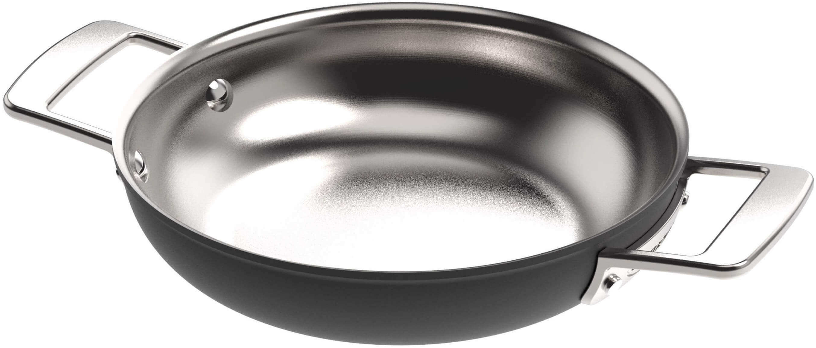Kruczoczarna, ogniotrwała powłoka mistrzowsko łączy się ze srebrną stalą nierdzewną. Korpus patelni z 2 uchytami zbudowany został z pięciu warstw dla optymalnej wydajności. Z wytrzymałymi i eleganckimi uchwytami dla jeszcze większej łatwości użytkowania. Black 5 to czysta moc, zarówno pod względem możliwości gotowania, jak i wyglądu. Super niezawodny do codziennego użytku w pomieszczeniach, a nawet do kulinarnych przygód na świeżym powietrzu.