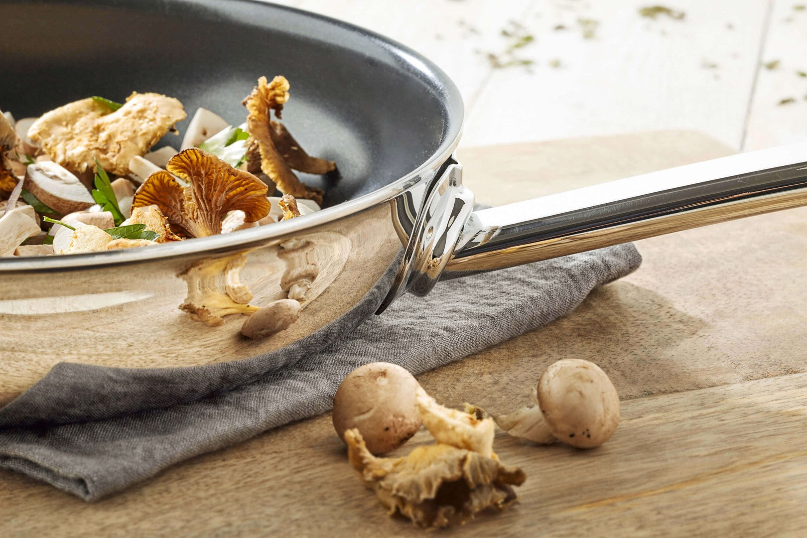 Patelnia płytka Demeyere Ecoline 5 ze stali nierdzewnej z powłoką zapobiegającą przywieraniu Ceraforce® to wymarzony pomocnik w kuchni dający olśniewające rezultaty. Korpus wykonany jest z 5-warstwowego materiału. Solidna kombinacja stopów szybko przewodzi ciepło, dzięki czemu można piec równomiernie i w kontrolowany sposób - nawet na małym ogniu. Dzięki powłoce zapobiegającej przywieraniu Ceraforce® możesz ładnie i równomiernie smażyć bez przywierania, z niewielką ilością tłuszczu. Niezależnie od tego, czy przygotujesz panierowany filet rybny, omlet z serem czy plastry tofu.