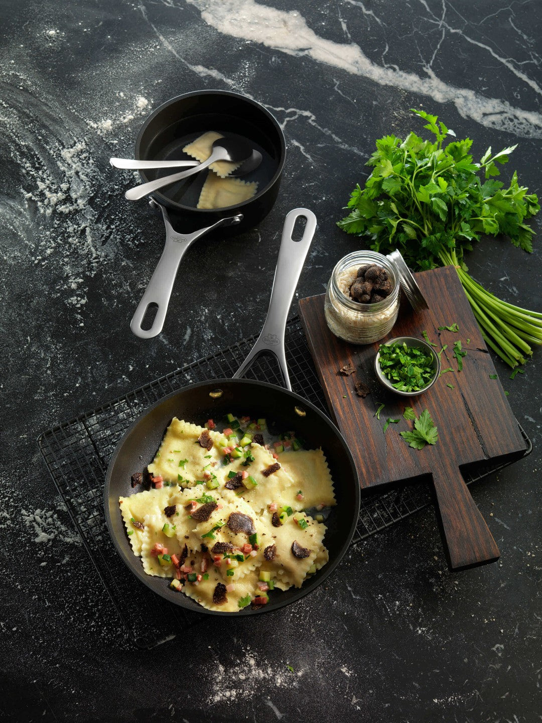 Wzór spodu typu „Radiant” patentu Ballarini zapewnia jeszcze bardziej równomierną dystrybucję ciepła, co przekłada się na stabilne nagrzewanie powierzchni użytkowej.