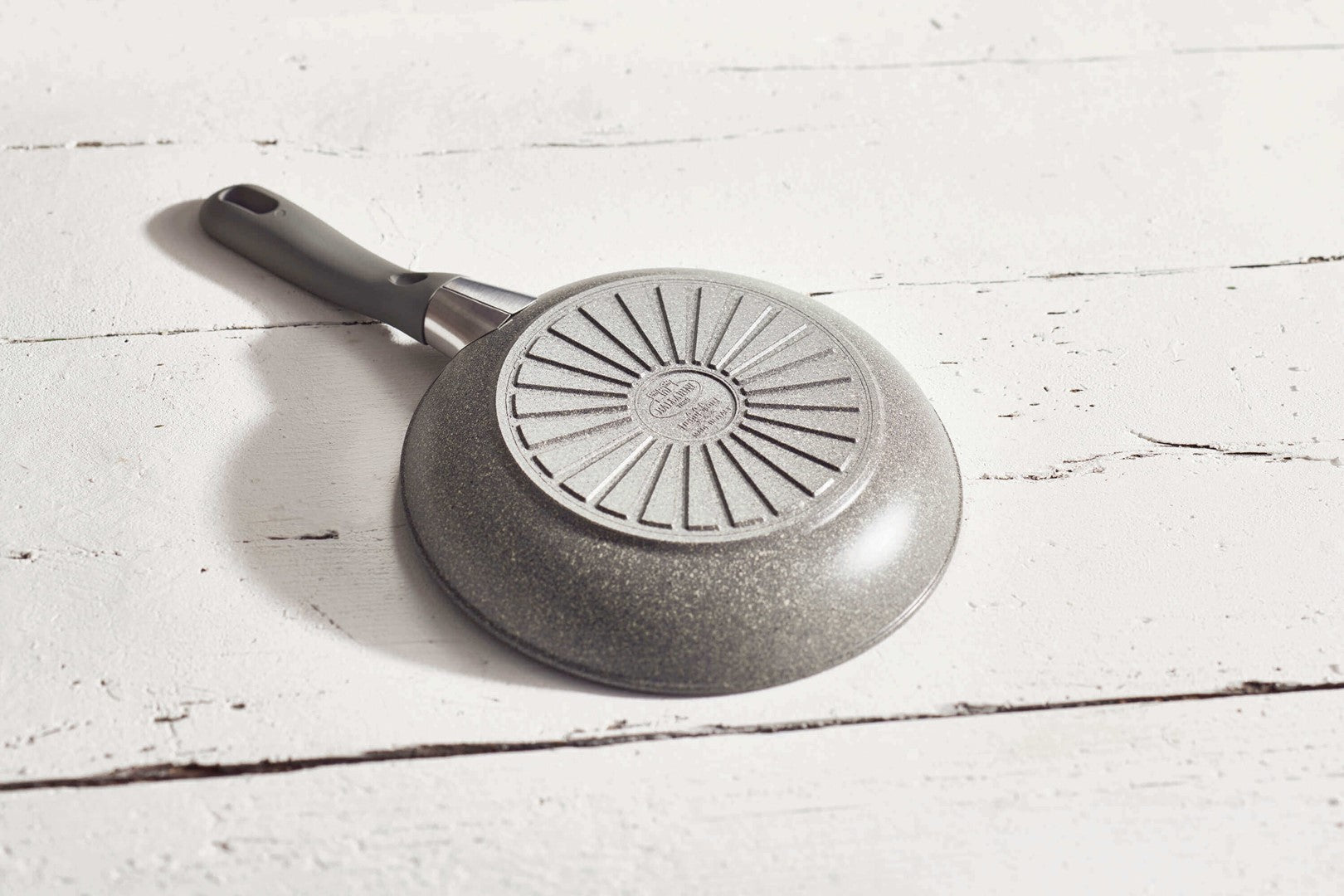 Patelnia z serii Murano marki Ballarini stanie się Twoją najbliższą kuchenną przyjaciółką. Smażenie, duszenie czy gotowanie okaże się codzienną przyjemnością. Jej piękny, granitowy design stworzony został przez wybitny duet projektantów Matteo Thun & Antonio Rodriguez. Patelnia jest odporna na zarysowania i łatwa w pielęgnacji dzięki specjalnej 5-warstwowej powłoce nieprzywierającej GRANITUM Extreme o grubości 4.5 mm. Bez obaw można ją czyścić w zmywarce, jednak dla zagwarantowania wyjątkowej trwałości zalecane jest mycie ręczne. Wysokiej jakości materiał wykonany z litego, kutego aluminium oszczędza cenny czas podczas nagrzewania.