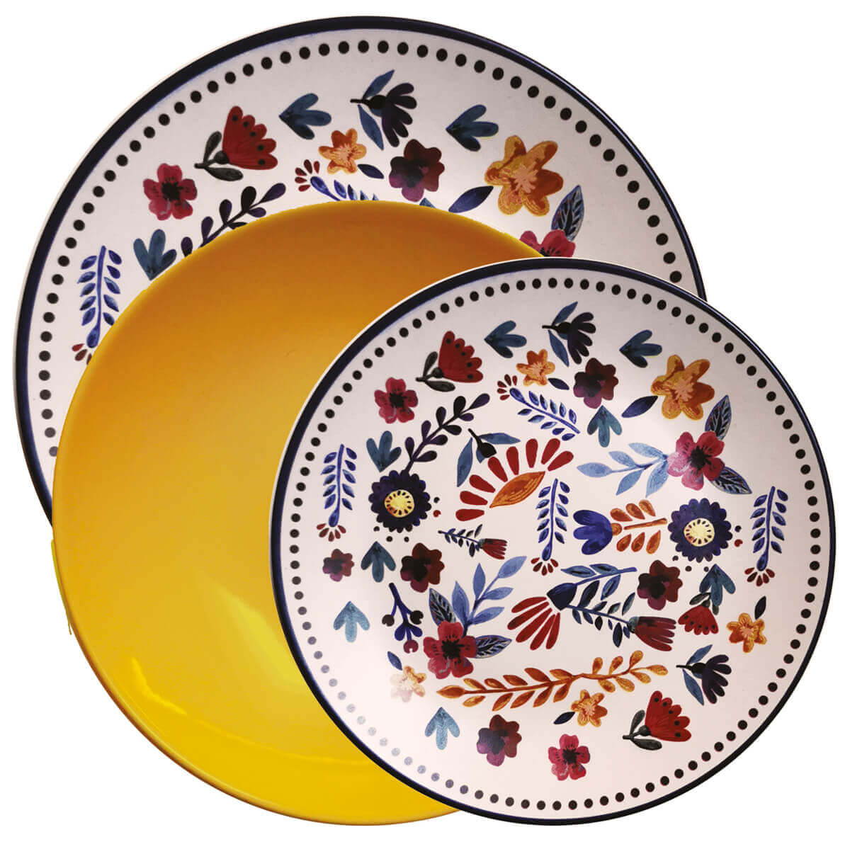 Odkryj wyjątkowy serwis obiadowy, który przeniesie Cię w świat radosnych barw i niepowtarzalnego wzornictwa. Ten komplet składa się z osiemnastu talerzy, zaprojektowanych tak, aby nadać Twoim posiłkom niezwykłego charakteru.