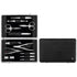 Pokryte aksamitem wnętrze solidnego, czarnego etui ze skóry bydlęcej z metalową ramką bezpiecznie przechowuje obcinacz do paznokci TWIN® S, nożyczki do paznokci, nożyczki do skórek, przyrząd do manicure 2 w 1, który łączy w sobie narzędzie do czyszczenia paznokci i odsuwania skórek w jednym, szafirowy pilnik do paznokci, pęsetę skośną, pęsetę spiczastą, pęsetę prostą, cążki do paznokci, cążki do skórek, obcinacz do skórek i nóż do skórek w kształcie litery V.