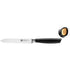 Wenn du viel kochst und die Zubereitung von Speisen dir echte Freude bereitet, brauchst du Werkzeuge, die dir die tägliche, manchmal mühsame und zeitaufwendige Arbeit erleichtern. Ein solches Werkzeug ist das Universalmesser mit einer Klingenlänge von 13 cm aus der Serie ZWILLING ALL * STAR. Seine gezahnte Kante schneidet mühelos frisches, knuspriges Brot, saftiges Obst und harte Gemüse. Der ergonomische Griff aus hochwertigem schwarzem Kunststoff, verziert mit einem designorientierten Aufsatz, der in vielen Farben erhältlich ist, liegt angenehm in der Hand und sorgt für ein müheloses Arbeiten. Die spezielle V-Edge-Technologie, die zum Schleifen der Klinge verwendet wird, garantiert perfekte Schneideigenschaften und außergewöhnliche Präzision beim Schneiden.