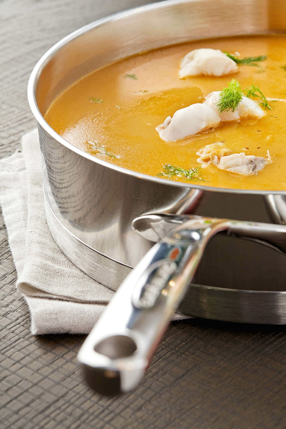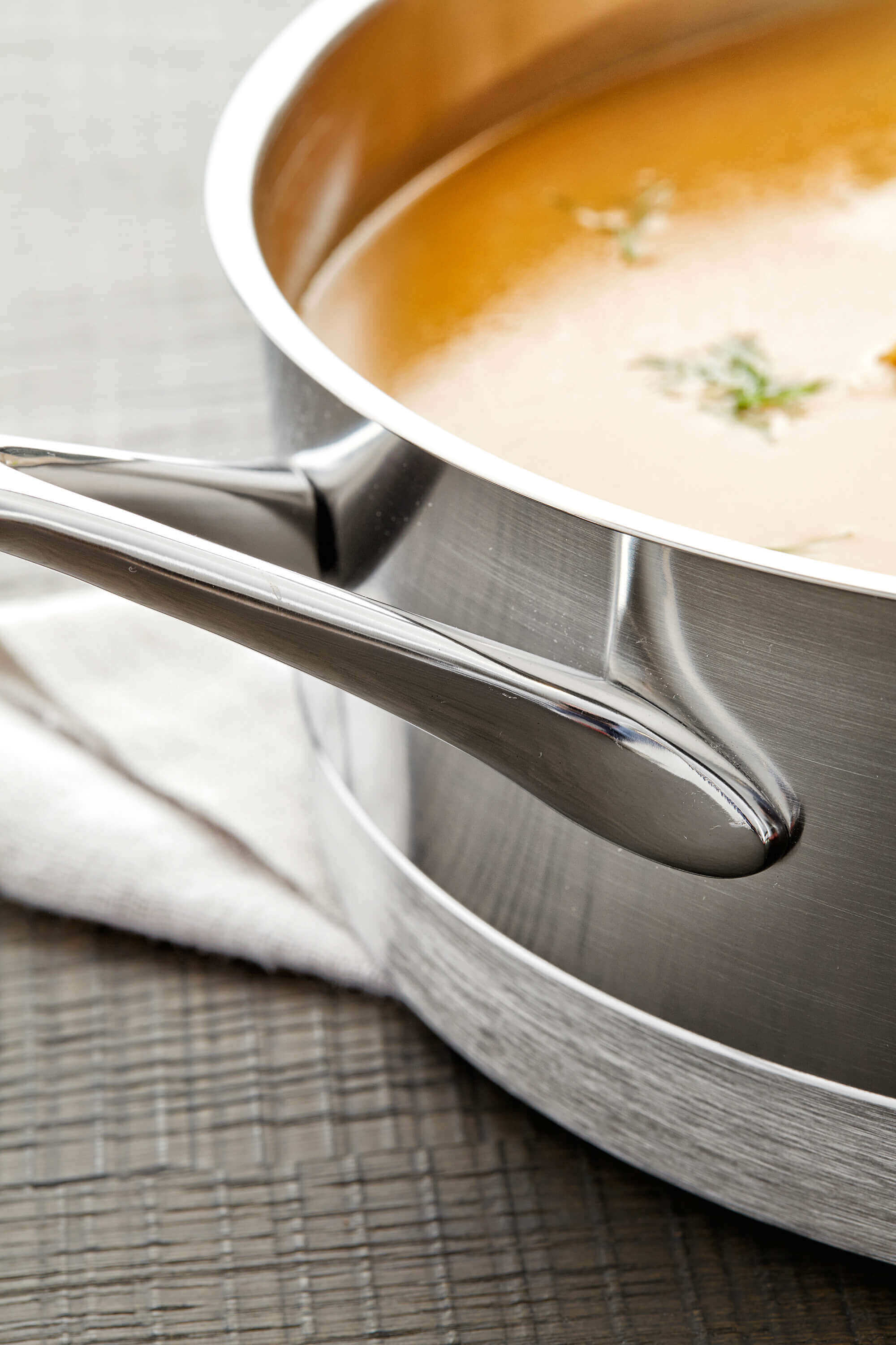 Das Schmoren ist ein Prozess, der vom Koch Geduld erfordert, aber mit köstlichem, zartem Fleisch und saftigem Gemüse belohnt wird: Die tiefe Pfanne aus der Serie Demeyere Atlantis eignet sich dank ihrer Form und der verwendeten Materialien hervorragend zum Schmoren auf allen Arten von Kochfeldern, einschließlich Induktionskochfeldern. Die Griffe der Pfanne bleiben auch während des Kochens angenehm kühl, wodurch die Arbeit mit ihr noch sicherer wird.