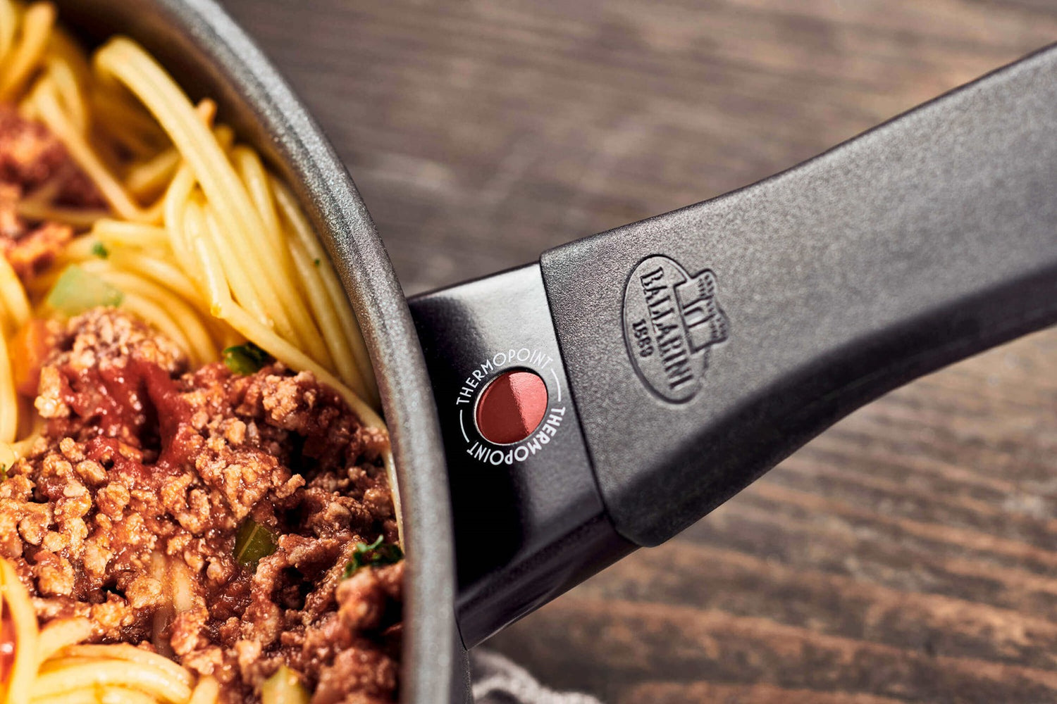Nie tylko jej perfekcyjny wygląd, ale przede wszystkim właściwości czynią ją świetnym partnerem na każdej kuchence – również indukcyjnej. Wykuta z masywnego aluminium szybko i równomiernie rozprowadza ciepło na całej powierzchni, a praktyczne dodatki takie jak Thermopoint umiejscowiony na wygodnym uchwycie z tworzywa sztucznego sprawiają, że korzystanie z niej jest dziecinnie proste. Wykorzystanie specjalnej technologii Radiant Induction nie tylko umożliwia korzystanie na płytach indukcyjnych, ale pozytywnie wpływa na redukcję zużycia energii. Ponadto naczynie bez obaw czyścić można w zmywarce. Aby jeszcze bardziej uprzyjemnić gotowanie, patelnia pokryta została trwałą, 4-warstwową powłoką nieprzywierającą KERAVIS Extreme o grubości 4.5 mm odporną na pęknięcia i zarysowania. Po co więc tracić czas na długie nagrzewanie czy szorowanie zabrudzeń, skoro można go poświęcić na wymyślanie autorskich, aromatycznych dań? Patelnia Ballarini Avola sprosta zarówno idealnie podsmażonym owocom morza, ale i doskonałym makaronom.