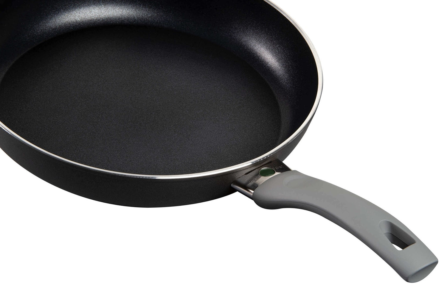 Patelnia Ballarini Lazise to prawdziwy diamencik kuchennego wyposażenia. Zachwyci zarówno amatora, grasującego w zaciszu swojej domowej kuchni, jak i ceniącego najdrobniejszy szczegół profesjonalistę. Aby się o tym przekonać, wystarczy przyjrzeć się niezwykłej, 4-warstwowej powłoce nieprzywierającej Keravis Diamond o grubości 3.5 mm, wzmocnionej naturalnymi drobinkami diamentu, dzięki której nie tylko unikniesz przypaleniom czy przywieraniu ulubionych dań, ale też ułatwisz czyszczenie zarówno pod bieżącą wodą, jak i w zmywarce. Solidny, gruby, aluminiowy korpus patelni doskonale się nagrzewa, równomiernie i szybko rozprowadzając temperaturę na całej powierzchni, a wygodny, odporny na wysokie temperatury uchwyt “stay cool” gwarantuje bezpieczną pracę bez obaw o oparzenia.