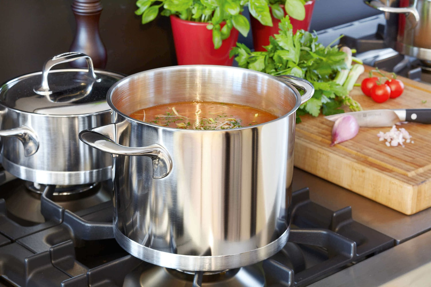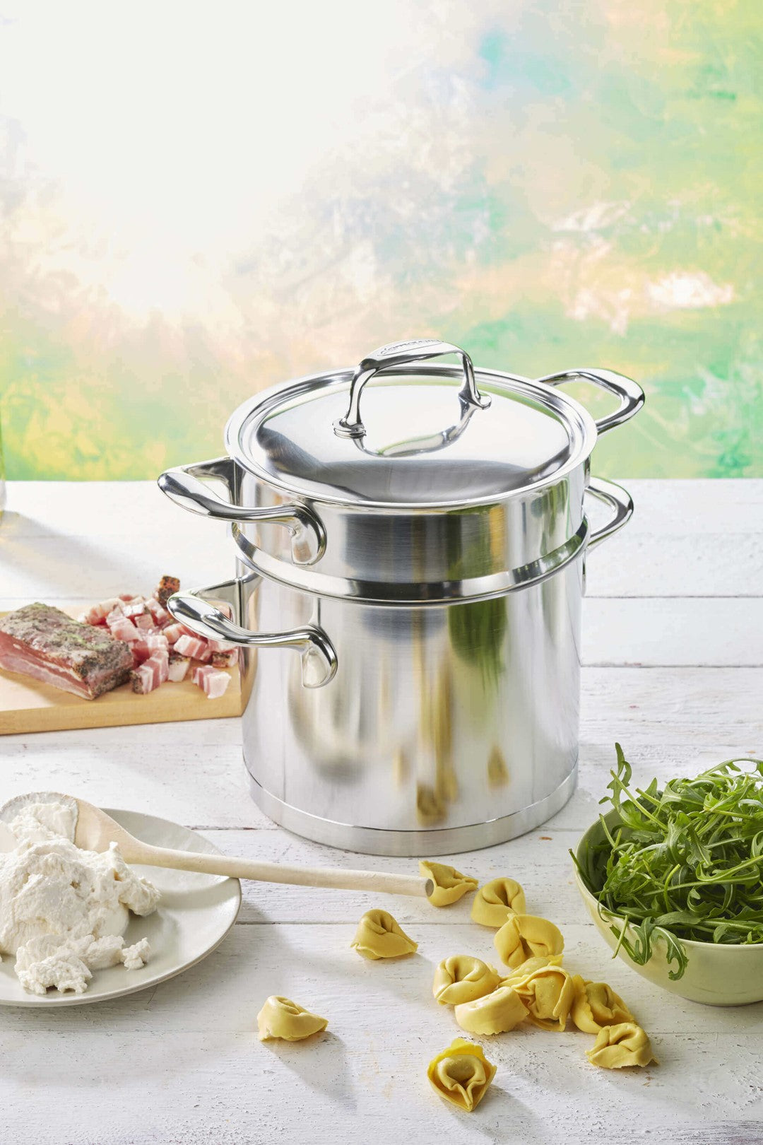 Wysoki garnek Demeyere Atlantis to prawdziwa perełka dla miłośników naczyń najwyższej jakości – połączenie doskonałego wyglądu i niezwykłej funkcjonalności.